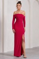 Accentuate your curves and flatter your figure in our Stand Out maxi dress. Crafted in a stretch jersey for a soft finish, our bodycon dress is complete with a seductive bardot neckline and all-over ruching for a flattering fit. This red dress is perfect for all occasions this party season.